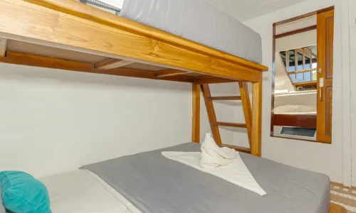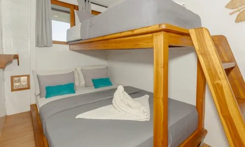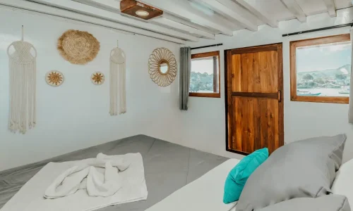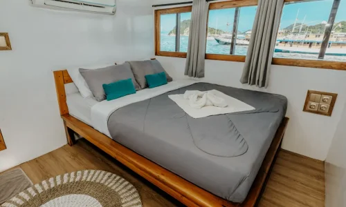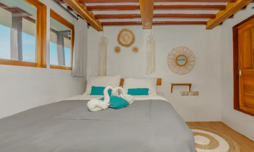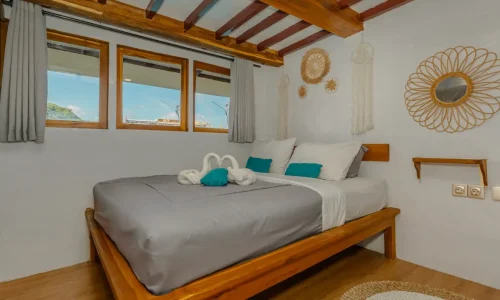 Explore the underwater wonders with our snorkeling equipment, providing an immersive experience without fins. Unleash your inner superstar with our onboard karaoke set, perfect for lively entertainment with friends and family. Relax in style on our spacious sundeck, complete with comfortable beanbags for sunbathing and stargazing. Our cruise features a semi-outdoor dining room for a unique dining experience amidst breathtaking views. With 6 cozy rooms offering private bathrooms, you can unwind comfortably after a day of exploration with Amore Phinisi boat charter