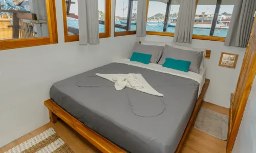 Experience luxury and adventure with Amore Phinisi in Komodo Island. Built in 2019, this magnificent vessel boasts dimensions of 5m x 26.5m, offering ample space for comfort and relaxation. With a dedicated crew of 6 persons, your every need will be catered to as you explore the stunning beauty of Komodo National Park. Unforgettable journey filled with breathtaking landscapes, vibrant marine life, and unparalleled hospitality aboard Amore Phinisi