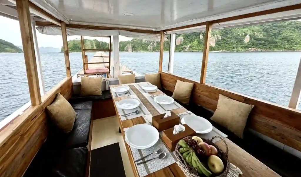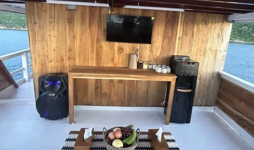 The Arham Jaya Boat provides a perfect combination of comfort, entertainment, and adventure for your sea journey. Enjoy delicious meals served in the cozy dining area, accompanied by tea and coffee to refresh your day. Stay connected with WiFi (Orbit) and enjoy entertainment through the Smart TV or sing your favorite songs with the karaoke set onboard. For those who love to relax, the relax area offers a peaceful space to unwind while admiring the sea view. Adventure seekers can enjoy the fun of paddle activities, while safety is always ensured with life jackets provided for all passengers. The Arham Jaya Boat guarantees a comfortable and memorable sailing experience for everyone.