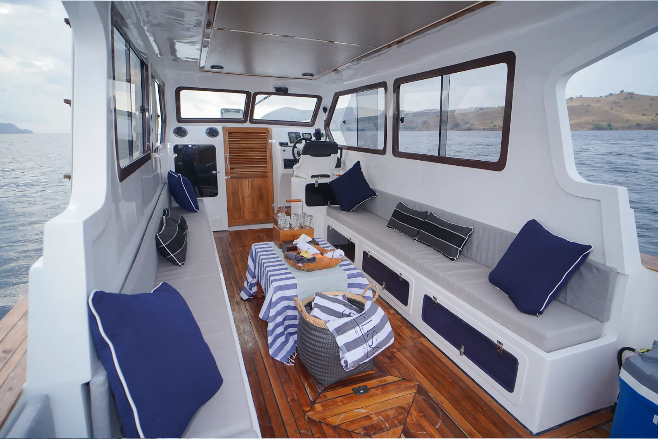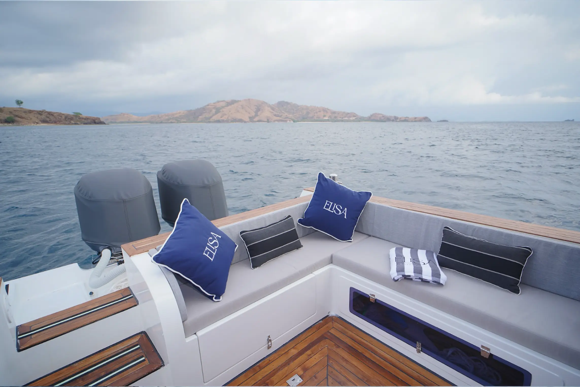 Set sail on Elisa, the ultimate speedboat designed to reach your destinations quickly, maximizing your time to explore. With a spacious seating, enclosed rest cabin featuring a toilet and refreshments on board for a pleasant journey.