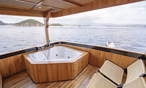 Discover the perfect getaway on Komodo Island with Lamborajo III Cruise Yacht. This 38-meter long, 6.8-meter wide cruise yacht offers 8 comfortable cabins, a spacious sundeck, and a relaxing Jacuzzi. Enjoy a drink at the bar or unwind in the cozy indoor area. Dive into exciting water activities, from snorkeling to paddle boarding. Lamborajo III Cruise Yacht promises a seamless and unforgettable adventure through the stunning landscapes of Komodo Island.