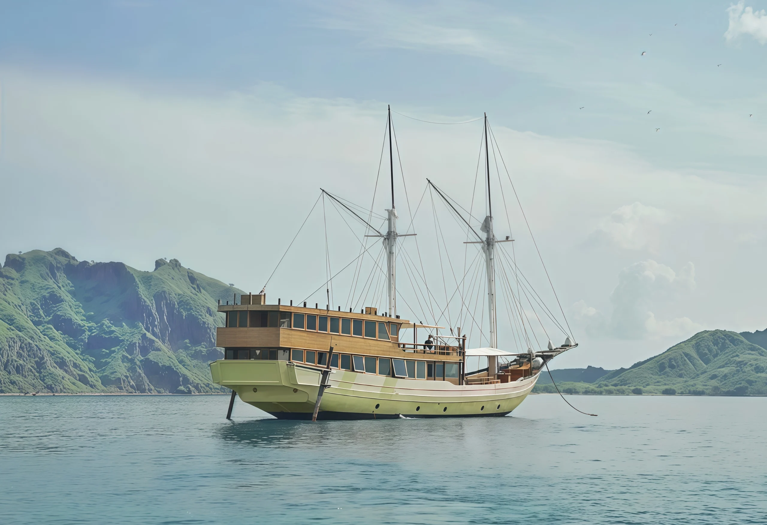 Navigate through a mosaic of islands, each adorned with lush greenery and surrounded by turquoise seas. The Phinisi’s slender silhouette allows access to hidden coves and secluded beaches, offering a private communion with nature. From the sun-drenched decks, witness Komodo’s untouched beauty, where rugged landscapes meet pristine shores.