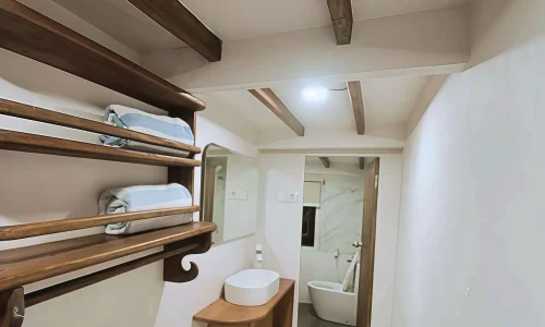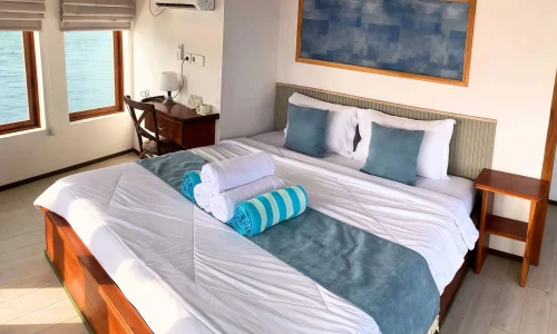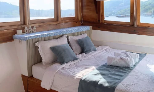 Leticia Phinisi step into a world where tradition dances with the winds – behold the awe-inspiring Phinisi, a maritime masterpiece boasting 7.6 meters of width and stretching an impressive 29 meters in length. What sets this vessel apart is not just its size but the choice of Ulin wood from the enchanting landscapes of Sulawesi, bringing an extraordinary touch of artistry and endurance to the seas. Each cabin is equipped with a private bathroom and air conditioning and can accomodate up to 25 passengers on board