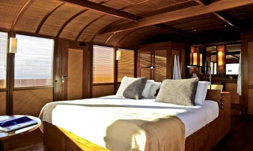 Mahodaya elegantly appointed interiors were created by the late Jaya Ibrahim, renowned designer of some of the world’s leading properties, including several of the iconic Amanresorts, The Dharmawangsa Hotel in Jakarta, the Legian in Bali and also the current Mahodaya and Azerai Resorts offices in Jakarta. All Mahodaya luxury yacht renovations and upgrades were carried out by the original design team and wood workers who retain a deep attachment to the vessel.