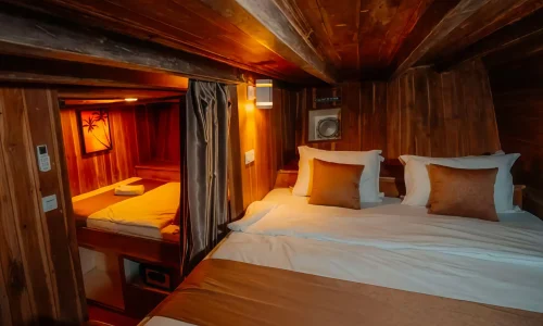 Cajoma IV is one of the most comfortable boats for relaxing and diving. Handcrafted from ironwood and teak, you’ll enjoy the charm of a traditional boat combined with the comfort of a modern boat. Designed for 10 people, the Suite Rooms feature their own private balconies, luxurious amenities, and a Jacuzzi on the upper deck with stunning sunset views.