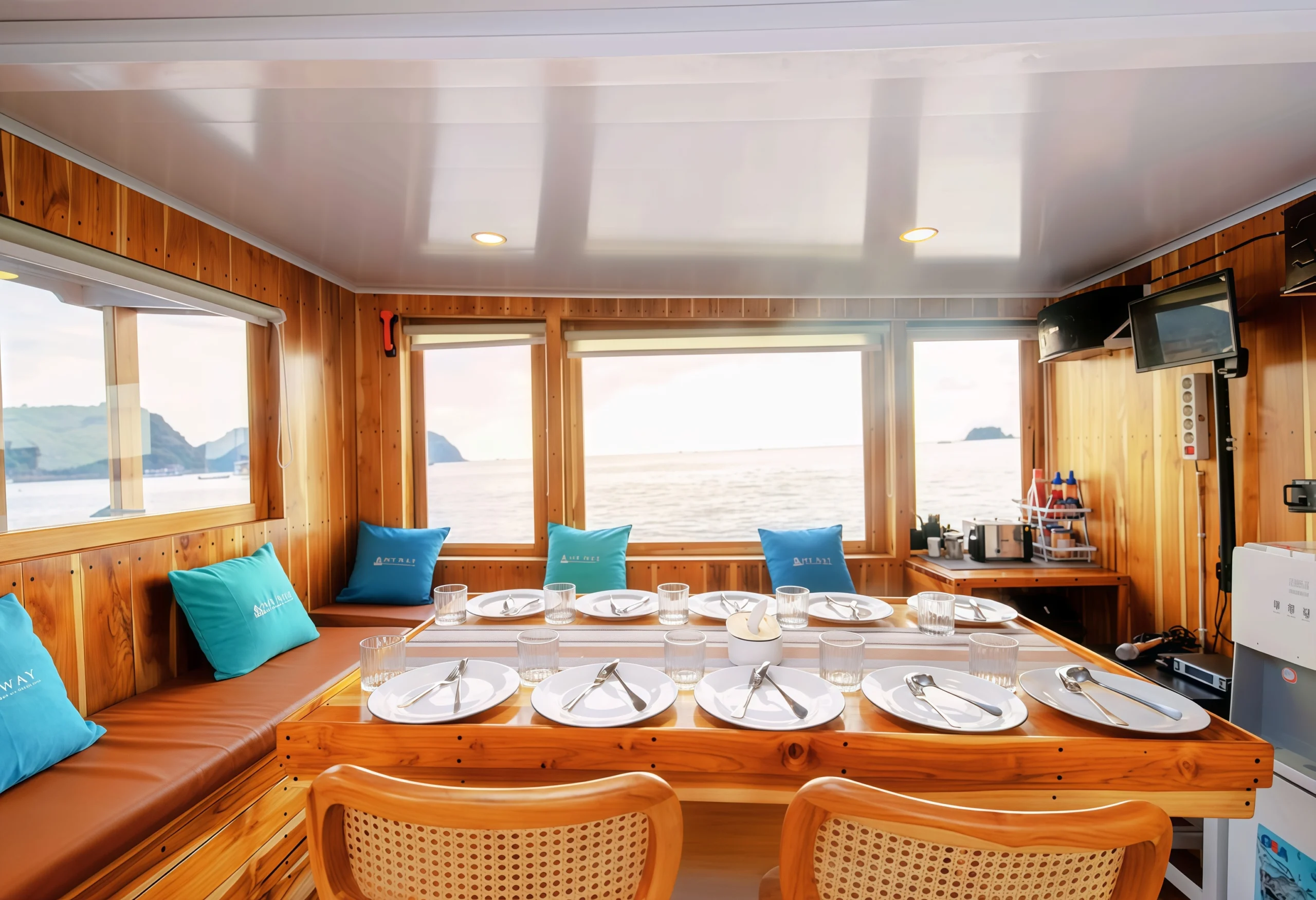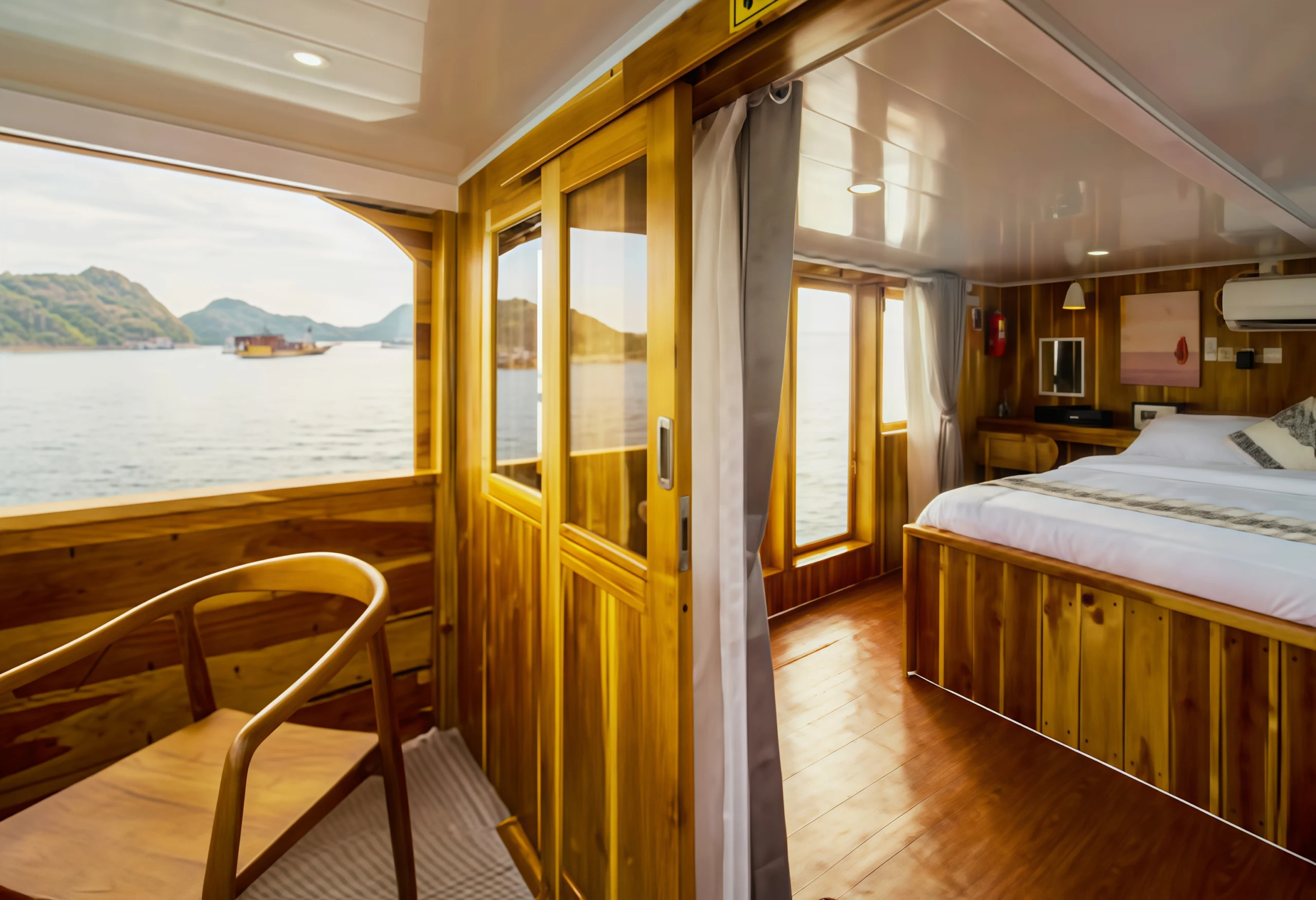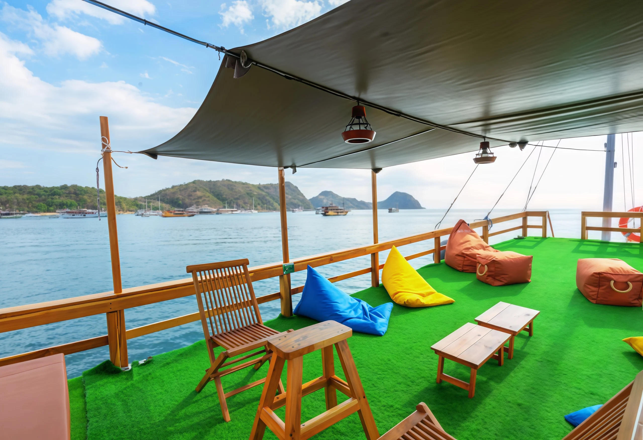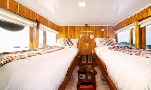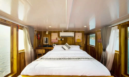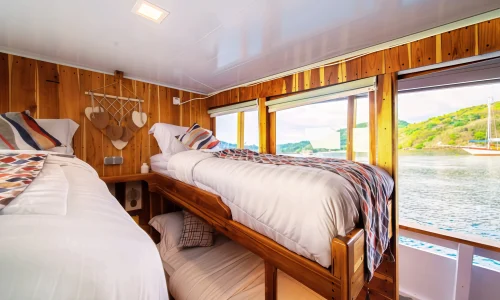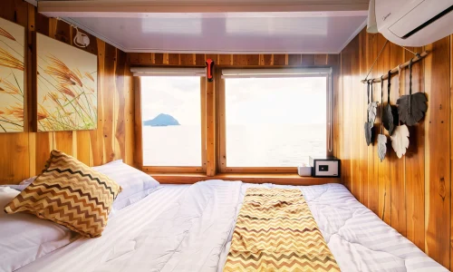 The My Way Komodo Sail provides a variety of amenities for guest comfort, including comfortable indoor and outdoor dining areas, a sun deck, and a relaxation area for sunbathing. Each guest also receives a personal tumbler and can enjoy a selection of soft drinks and snacks. For entertainment, the ship is equipped with Bluetooth speakers, onboard Wi-Fi, and a variety of exciting games to enjoy during the voyage.