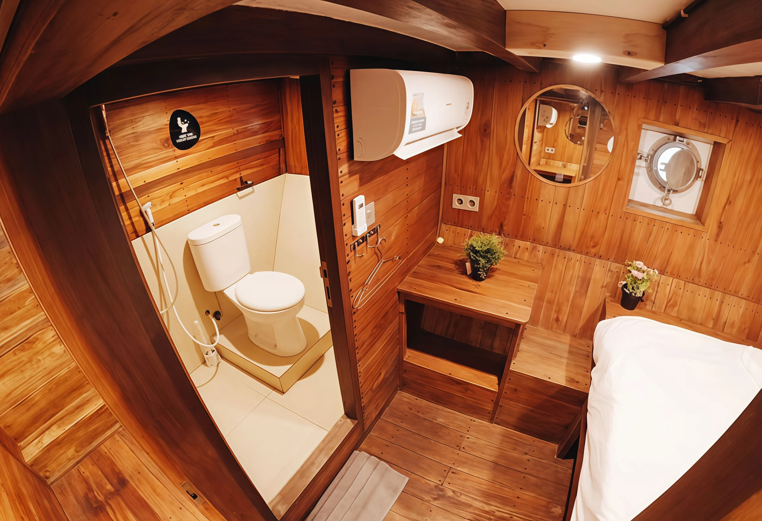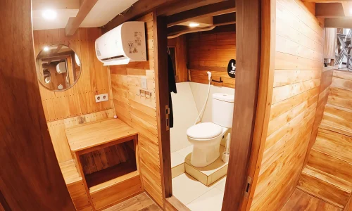 Narasea liveaboard provides full board meals with complete meals throughout the trip, as well as complimentary mineral water, tea and coffee, and a water dispenser for passenger comfort. Each cabin is equipped with air conditioning to keep it cool, and towels and life jackets are provided for safety. Entertainment is also provided through TV, karaoke, and a sound system, making the trip more enjoyable. The ship has a bar area for relaxing, a dining area for communal meals, and a sundeck to enjoy the ocean views. For those who love marine activities, snorkeling gear is available, and for safety, the ship is equipped with a first aid kit. In addition, a local guide is ready to assist and guide you on your trip.