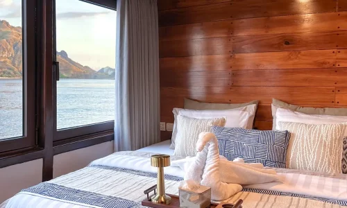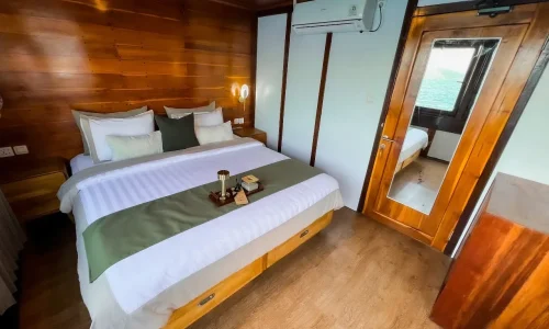 Neptune Phinisi crafted to blend luxury with adventure, accommodates up to 20 guests in its 7 lavish cabins, with options to extend capacity to 20 people using extra beds. Choose from deluxe, suite, or master cabins, all featuring either twin or king-sized beds, air conditioning, and private bathrooms equipped with warm showers to enhance your comfort. Make your booking today and discover the exclusive pleasures of the Neptune Phinisi, where every detail is tailored for your enjoyment.