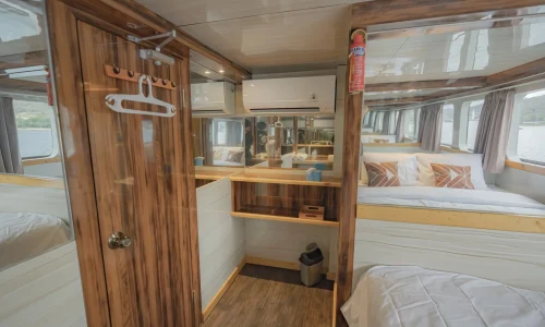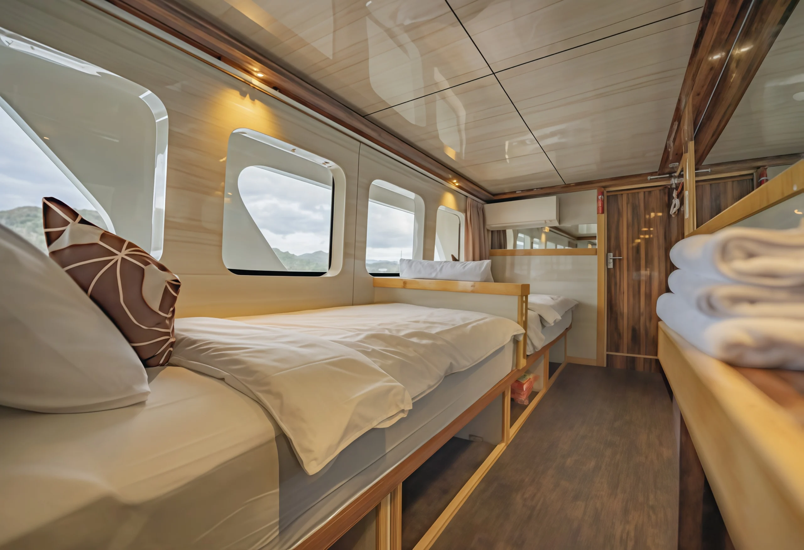 Experience luxury at sea with Ocean Angle Cruise, your ideal choice for exploring Komodo National Park. This luxurious Phinisi is perfect for families, groups, or honeymooners, offering comfortable rooms with ocean views, an outdoor jacuzzi, and a sun deck. Ocean Angle is designed to ensure a memorable journey through the park’s breathtaking islands, combining comfort with the thrill of discovery. Step aboard for an unforgettable adventure amidst nature’s finest.
