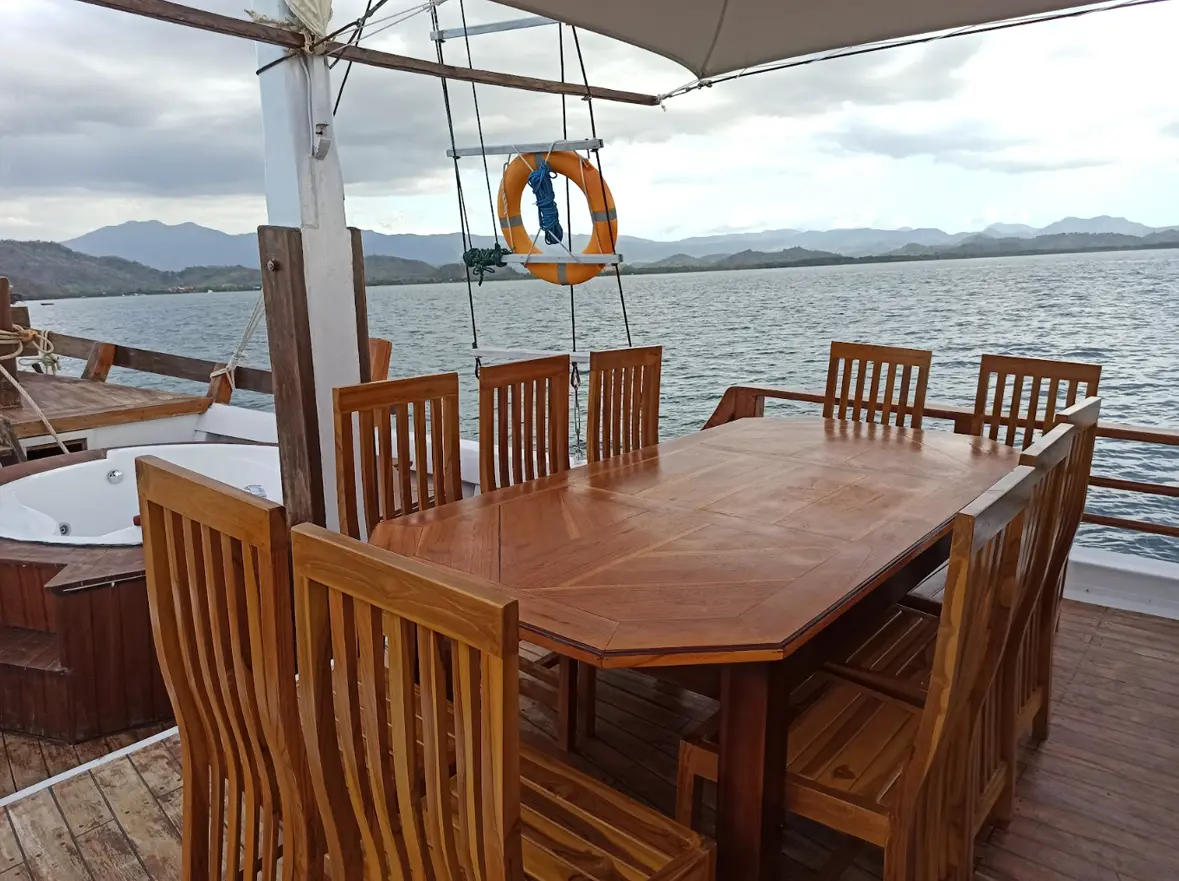 Enjoy the voyages with all comfortable facilities of Riley Cruise Phinisi. Check out the Riley luxury facilities such as outdoor dining & jacuzzi area, balcony, lounge, and all part of the boat which is designed perfectly to discover the amazing islands of Komodo National Park.