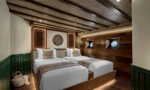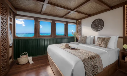 Step aboard Samsara Samudra and prepare to embark on an extraordinary voyage. This magnificent 42-meter yacht is a true masterpiece of design, combining the very best of luxury with the braeathtaking natural beauty of the ocean. With its sleek phinisi-style construction, Samsara Samudra boasts modern and elegant accommodations, each one designed to provide the ultimate in comfort and relaxation.