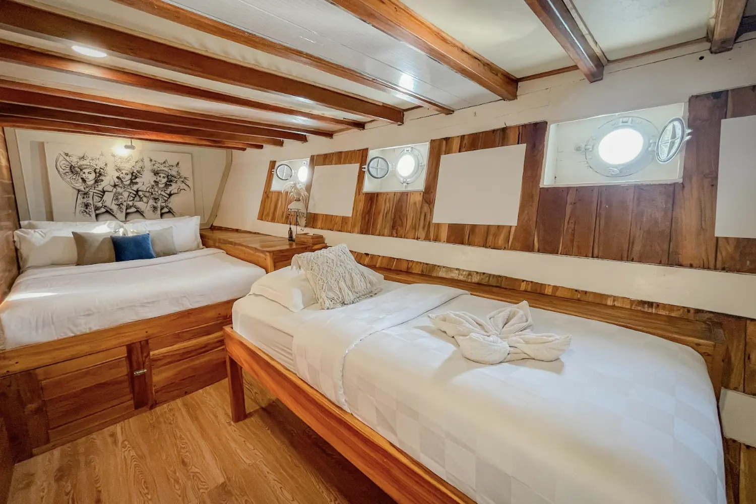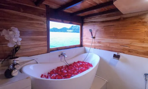 Measuring a generous 31 meters in length, and 5,5 meters in wide, it have 6 cabins are comfortably appointed for fourteen up to eighteen guests, making Vinca the perfect home base for private event charter groups and extended cruising that ensuring you have a relaxing journey accompanied by our professional and friendly crews.