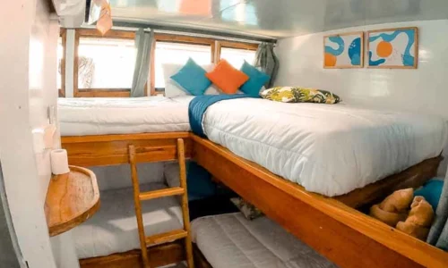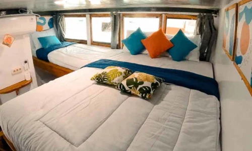 Set sail with Bombana 1 Phinisea, a stunning yacht cruise phinisi in Labuan Bajo. This 23 meter boat comfortably fits 15 guests in 5 cozy, air-conditioned cabins with private toilets. Enjoy exciting activities like canoeing and paddleboarding while exploring Komodo National Park. Every moment will be unforgettable. Book Bombana Phinisi now and embark on an amazing adventure!