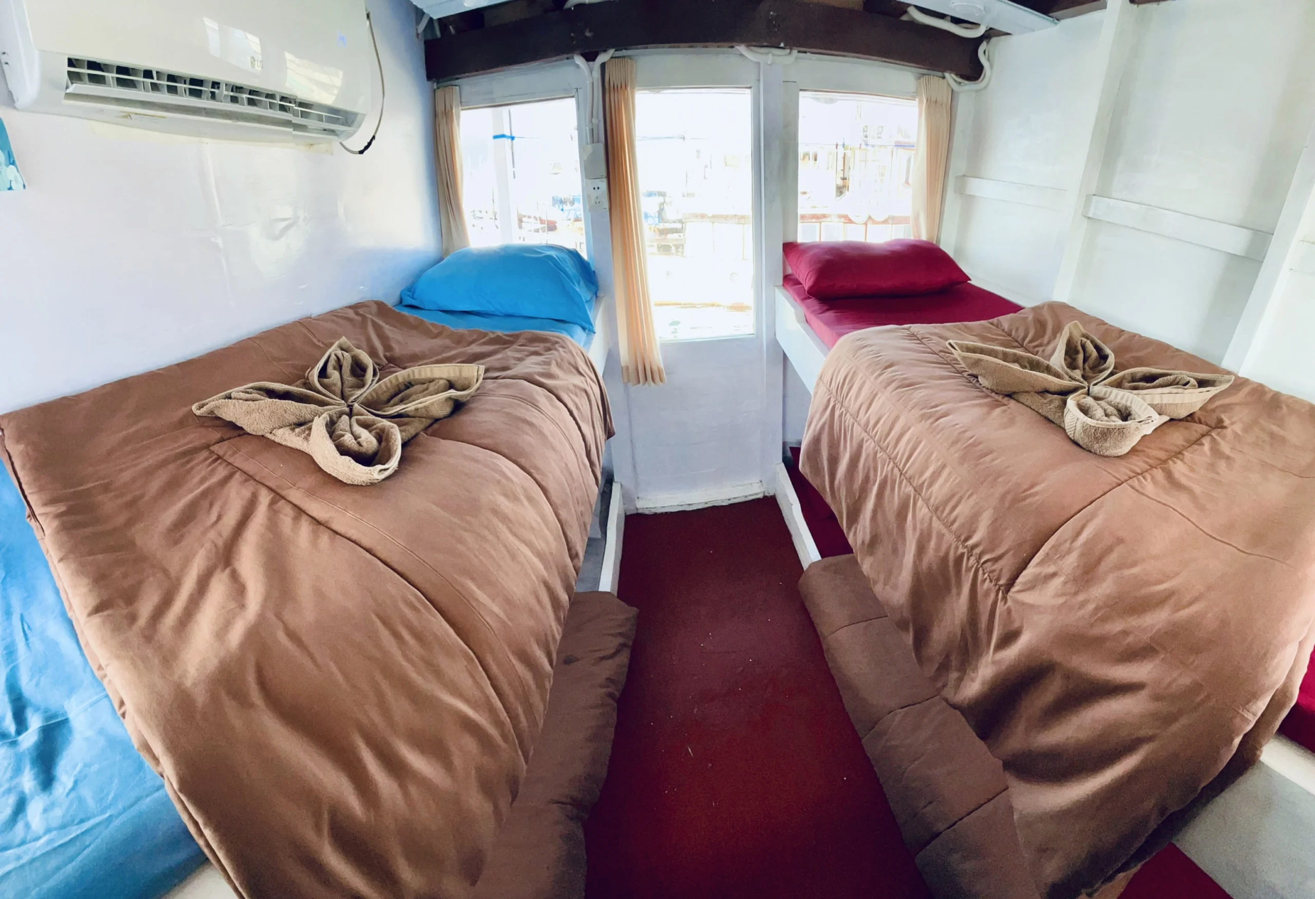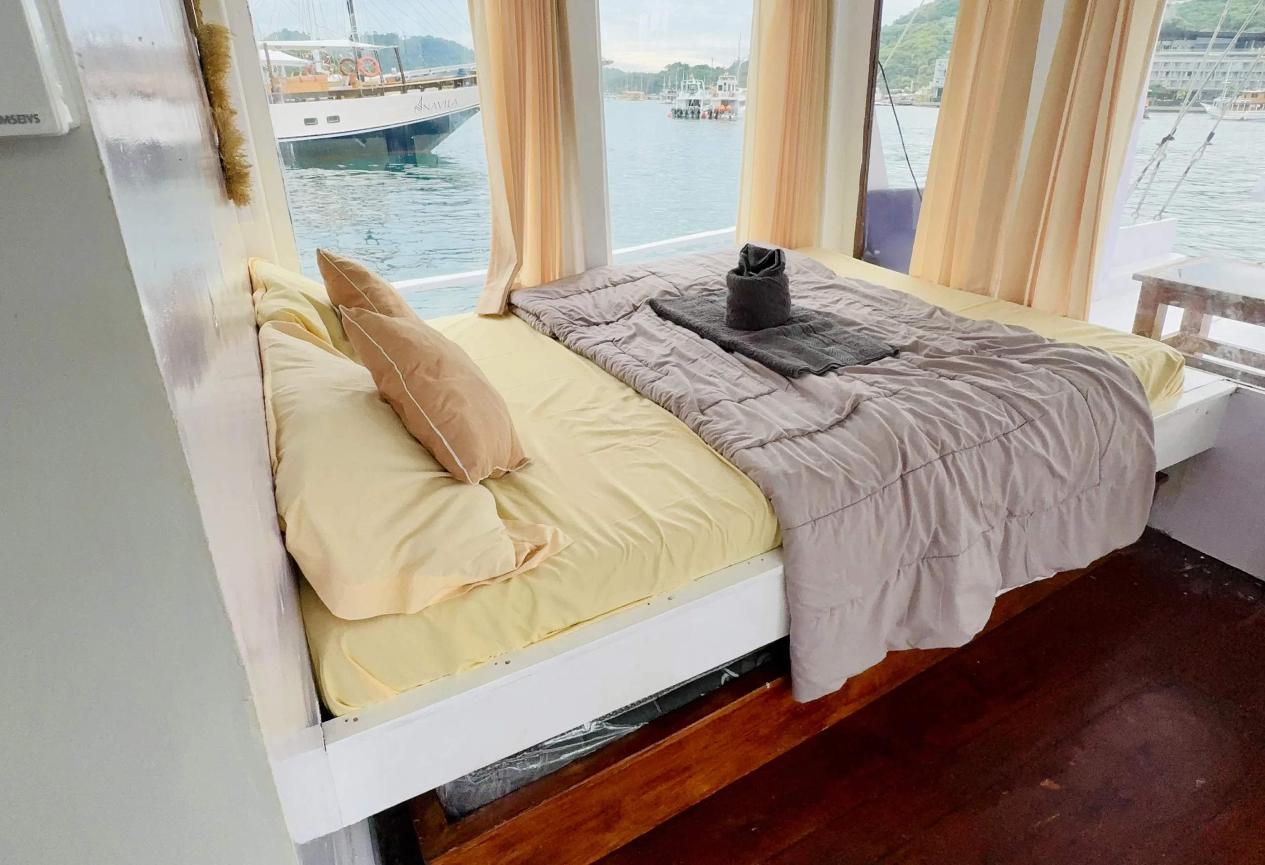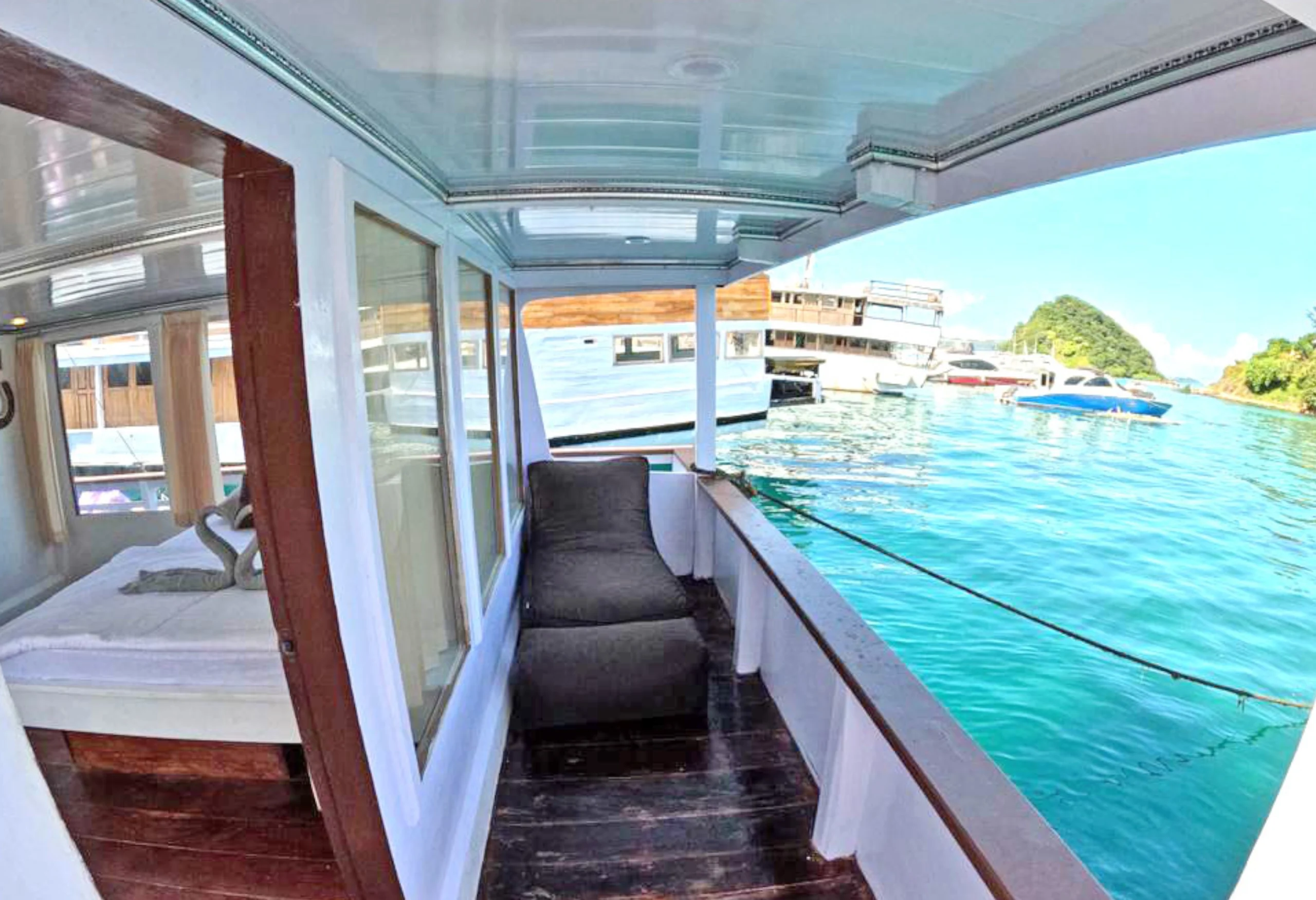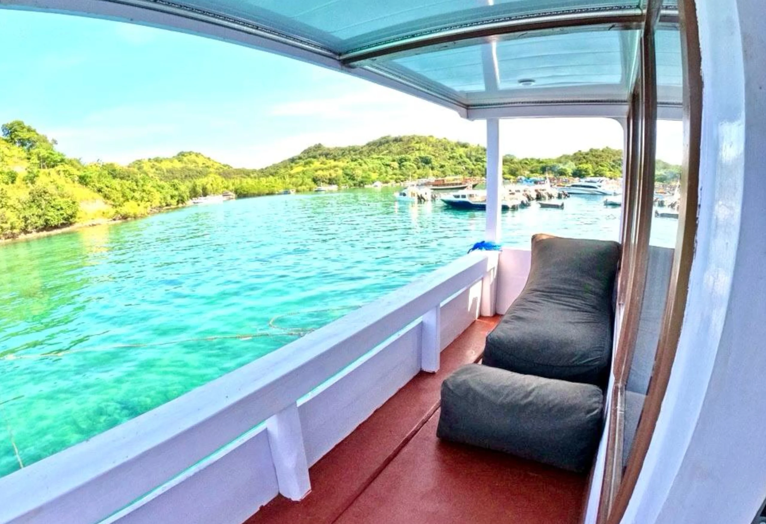 For passengers who want to enjoy sightseeing activities, the ship provides snorkeling facilities to explore the beauty of the underwater world, as well as bean bags for relaxing and enjoying the scenery during the voyage.
