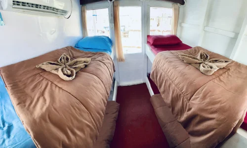 For comfort during the voyage, the ship provides a dining area with delicious food prepared directly by the onboard chef, so passengers can enjoy fresh, high-quality dishes. Furthermore, Starlink Wi-Fi is available, allowing stable internet access even at sea.