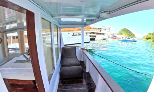 King Cirox Phinisea is a modern vessel with a freshwater tank capacity of 4 tons and fuel of 1 ton, and is powered by a Mitsubishi 90 HP + 190 HP engine that provides strong and stable performance. This vessel can accommodate 6 crew and 23 passengers, making it suitable for tourism and sea transportation.